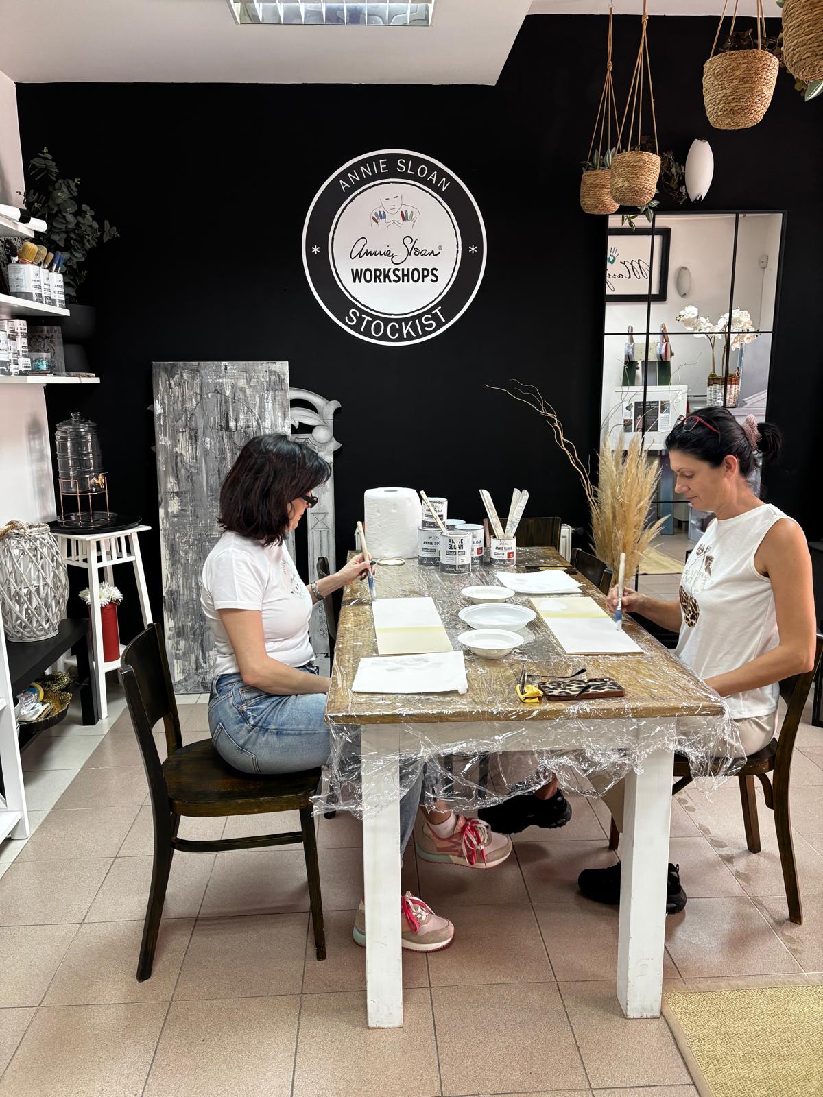 U našem ateljeu se održavaju akreditovane radionice brenda Annie Sloan, različitih nivoa. Od Workshop Annie Sloan “Osnove” preko “Makeover nameštaja” do različitih dekorativnih tehnika, od početnog do najzahtevnijeg nivoa. Radionice vodi akreditovano lice brenda Annie Sloan za Workshop Marija Lukić.