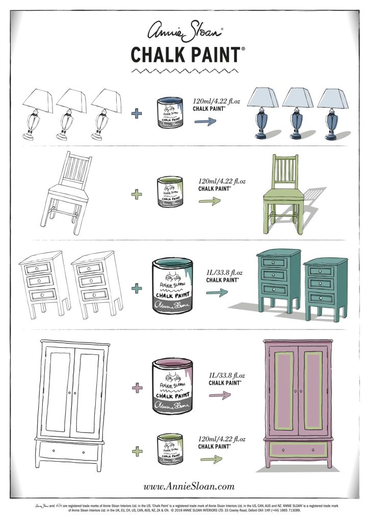 - Niste sigurni koliko je potrebno kupiti Chalk Paint® boje? Pogledajte praktični Vodič za pokrivnost Chalk Paint® boje.